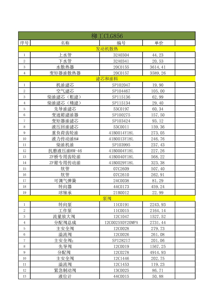 柳工CLG856 全車主要配件價(jià)格 濰柴國I高配
